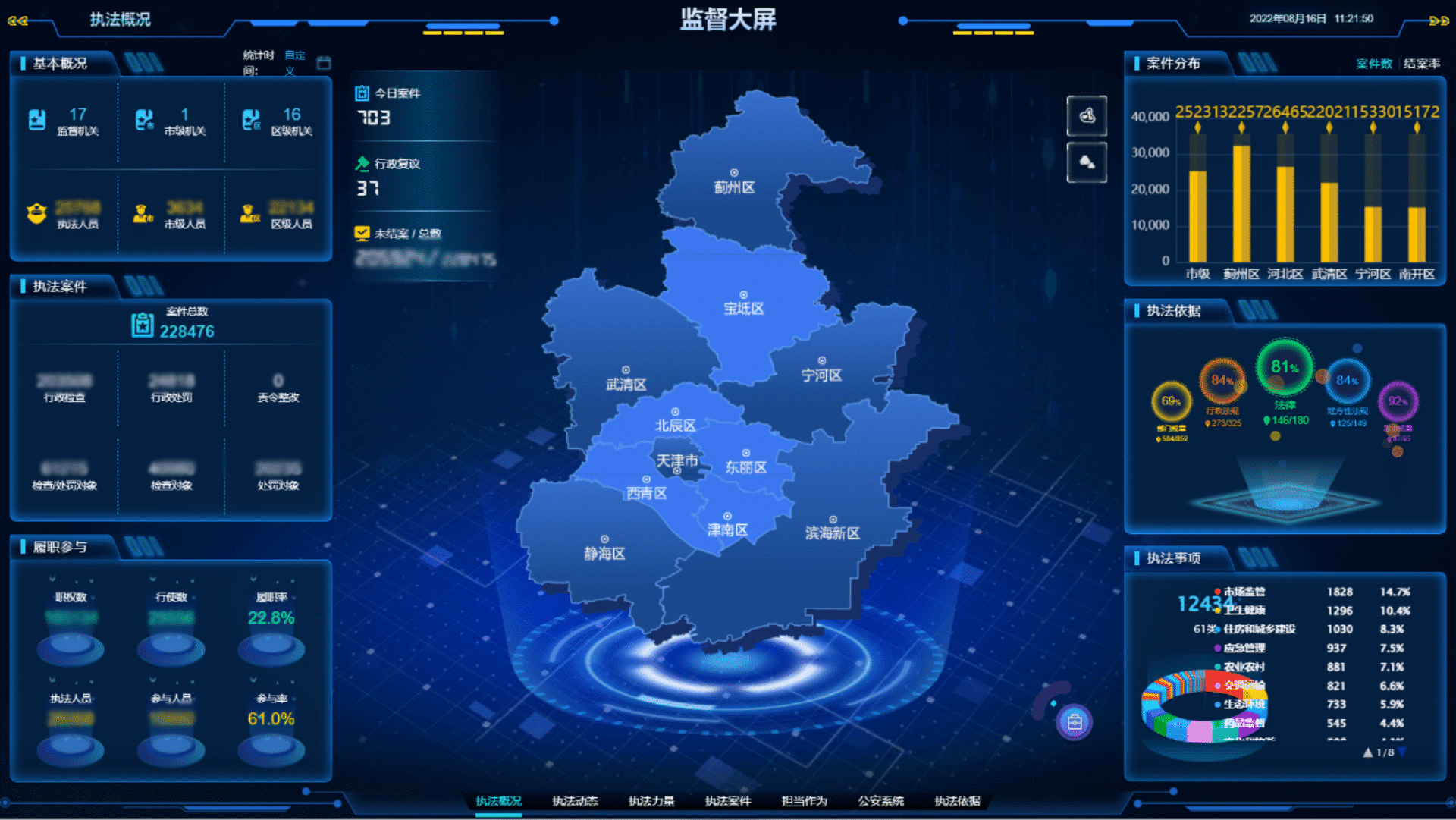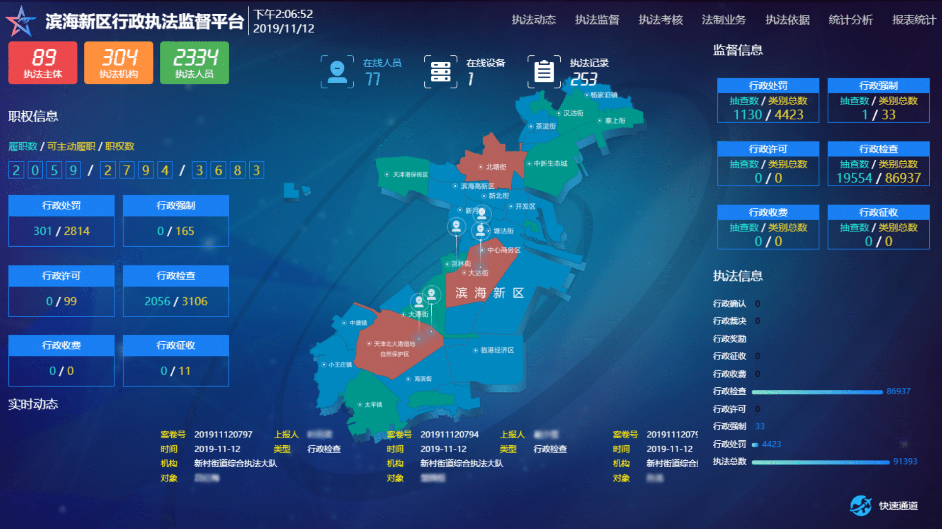 即刻了解天津市濱海新區(qū)執(zhí)法監(jiān)督平臺依托互聯(lián)網(wǎng)+、大數(shù)據(jù)、云計算等現(xiàn)代信息化技術(shù),為天津濱海新區(qū)開發(fā)建設(shè)了集執(zhí)法辦案、執(zhí)法監(jiān)督、法制審核、法制業(yè)務(wù)等功能于一體的“濱海新區(qū)行政執(zhí)法監(jiān)督平臺”,實現(xiàn)了全區(qū)行政執(zhí)法工作網(wǎng)上開展、執(zhí)法文書網(wǎng)上制作、執(zhí)法監(jiān)督實時開展、考核結(jié)果自動生成。后期按照推行行政執(zhí)法三項制度試點工作的要求,在平臺原有功能基礎(chǔ)上,進(jìn)一步拓展了系統(tǒng)功能。依靠此平臺助力天津濱海新區(qū)不斷提高依法行政的能力和水平。