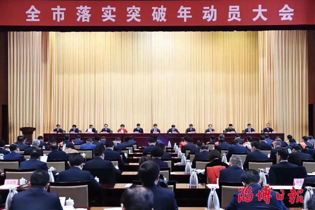 2021年2月18日,淄博召開(kāi)全市落實(shí)突破年動(dòng)員大會(huì),淄博市委書(shū)記江敦濤講話(huà),淄博市委副書(shū)記、市長(zhǎng)馬曉磊主持會(huì)議...