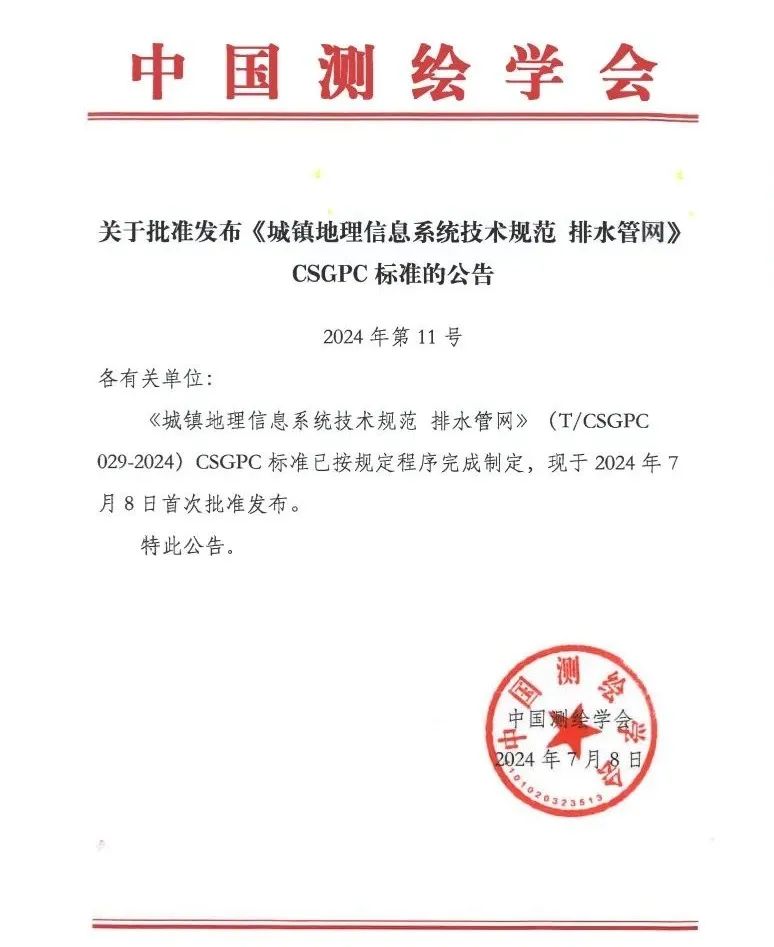 日前,由數(shù)字政通全資子公司保定金迪主編的《城鎮(zhèn)地理信息系統(tǒng)技術(shù)規(guī)范 排水管網(wǎng)》(T/CSGPC029-2024)CSGPC標(biāo)準(zhǔn)(...