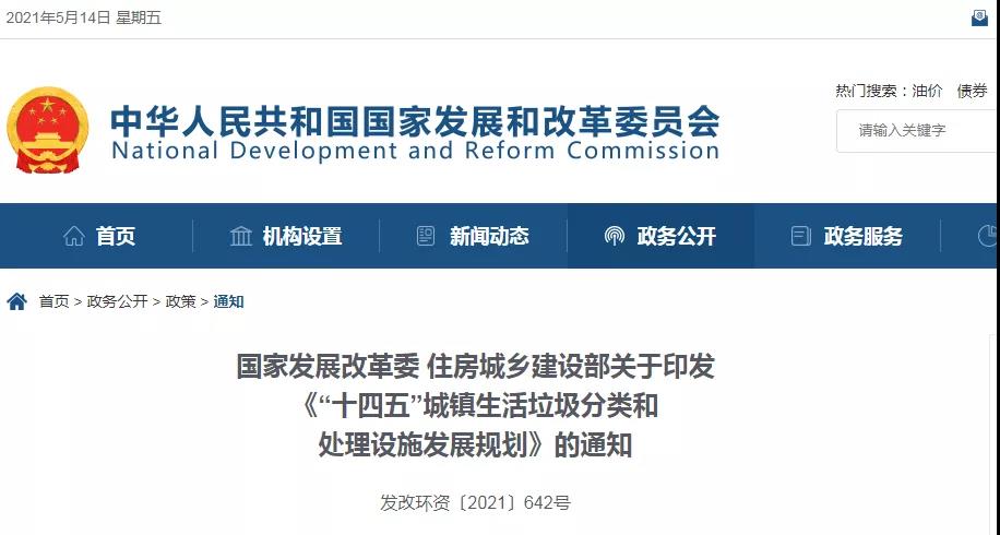 國家發(fā)展改革委、住房城鄉(xiāng)建設(shè)部日前發(fā)布《“十四五”城鎮(zhèn)生活垃圾分類和處理設(shè)施發(fā)展規(guī)劃》提出,到2025年底...
